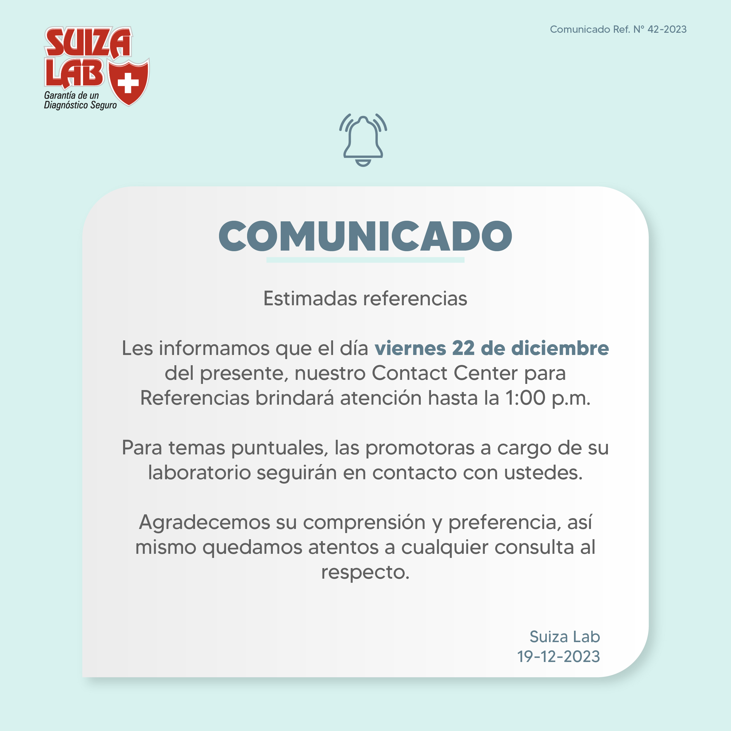 Suiza Lab > Comunicados > Comunicado N° 42-2023