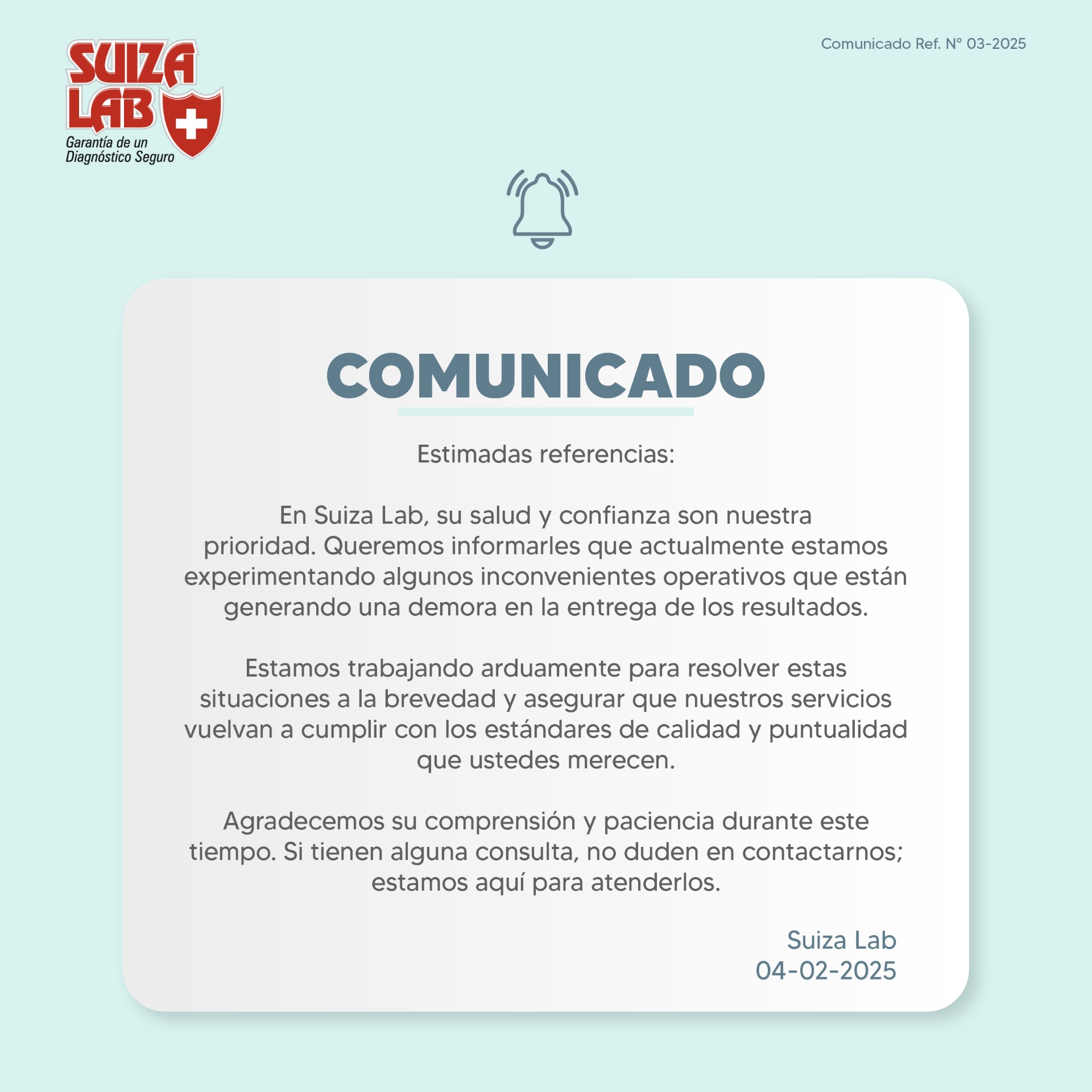 Suiza Lab > Comunicados > Comunicado Ref N° 03-2025